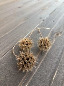 そのあと、足元に落ちていたトゲトゲの実をひろいました。硬くて、無骨で、でもどこか美しい。
